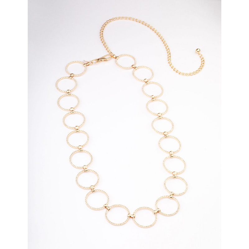 • This Gold Large Diamante Circle Belt is both practical and chic. Style this belt with a pair of trousers or layer over a maxi skirt for added detail to your outfit.