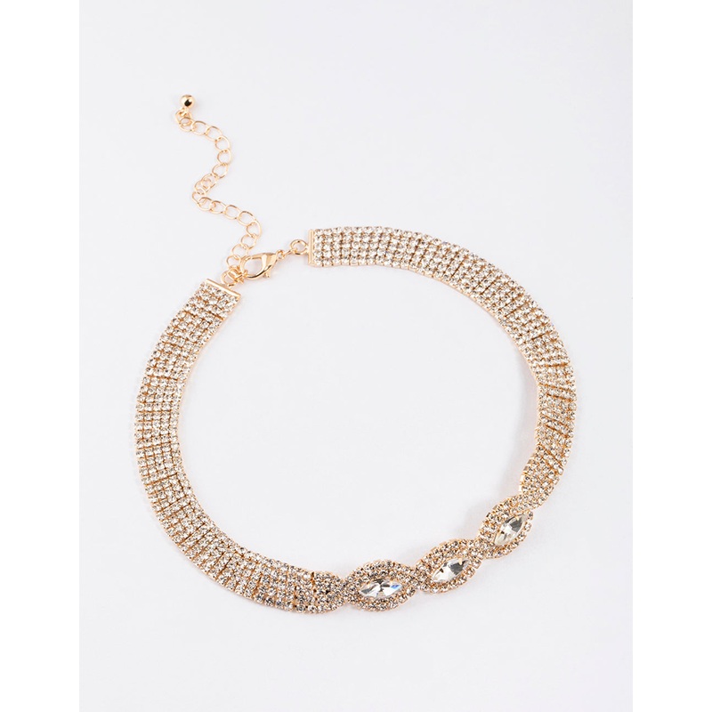 • Style this Gold Marquise Bling Choker Necklace with a simple, gold diamante choker for a maximalist look.