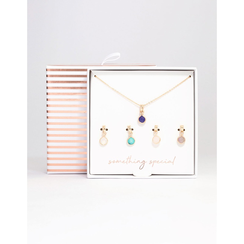 This gift box contains one gold pendant necklace and five semi-precious charms, all representing their own unique meanings.