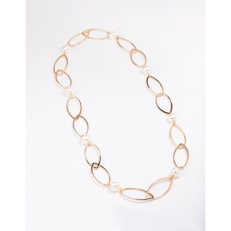 Gold Oval Pearl Link Chain Necklace