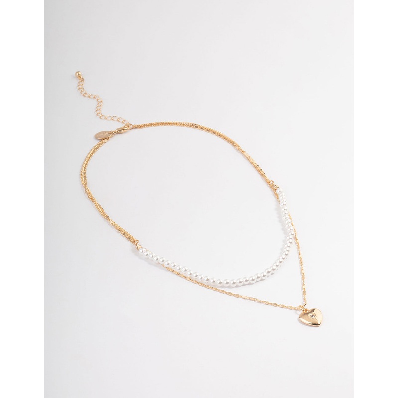 - Style this gold-toned pearl and heart motif layered necklace with a matching heart locket bracelet from our Boutique Collection.
