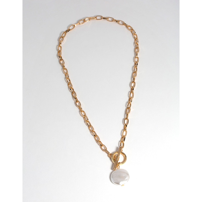 Dainty chain necklaces are versatile wardrobe staples that can elevate any ensemble. This gorgeous gold-toned necklace features a chain link design with a faux pearl hanging from a T&O clasp. Wear it on its own for a considered look, or stack it with other chokers and chains for big impact.