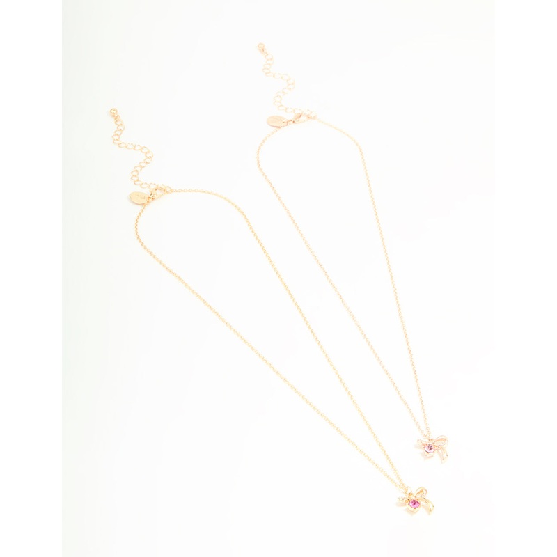 Gold Pink Diamante & Bow Necklaces 2-Pack