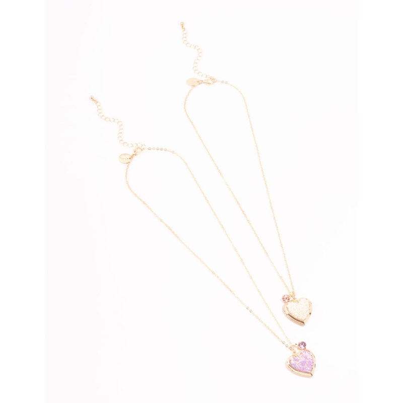 Gold Pink Sprinkle Heart Locket Necklaces 2-Pack