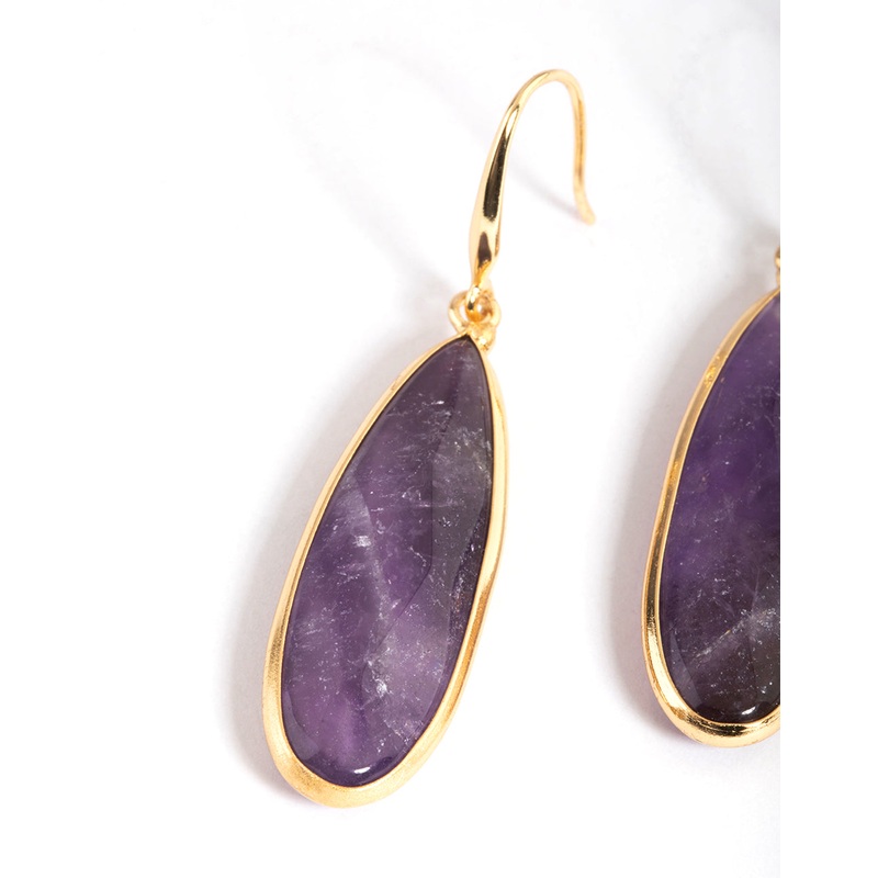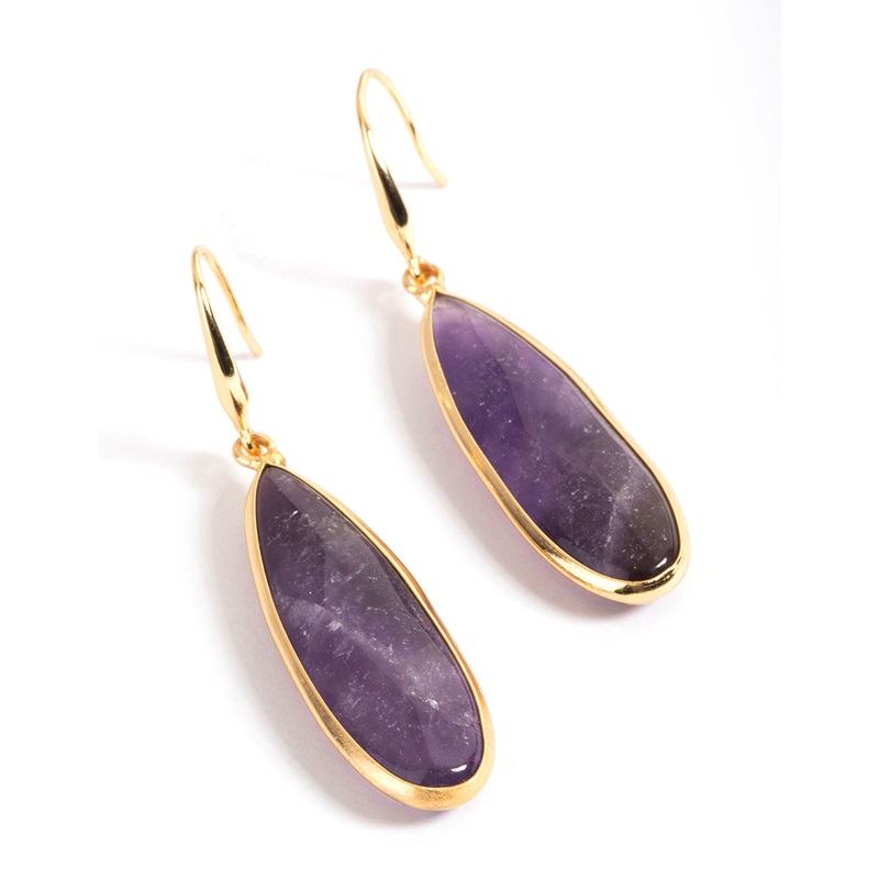Be the first to review “Gold Plated Amethyst Long Facet Drop Earrings”