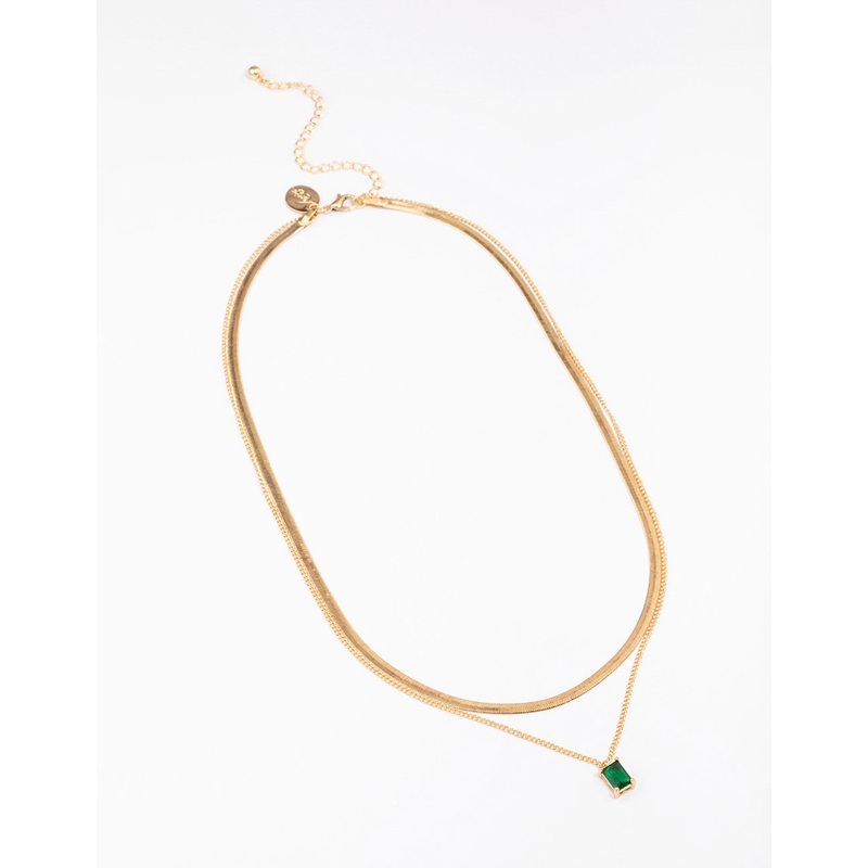 Curate your own signature look with this gorgeous, gold plated necklace. This layered necklace features a thick snake and fine gold chain, adorned with an emerald baguette-cut crystal. Perfect for adding interest to your neckline!