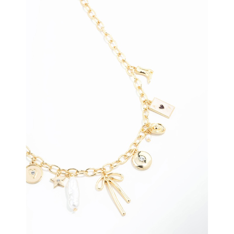 Add some flair with this stunning charm necklace! Featuring bow, heart, evil eye, boot, love letter, star, and more, it brings a unique and fun touch to any outfit.