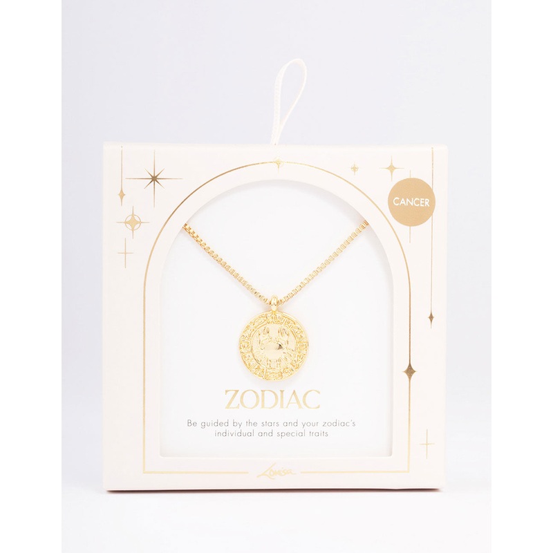 • This gift set features a gold plated pendant necklace adorned with a Cancer star sign charm, perfect for the astrology lovers in your life!