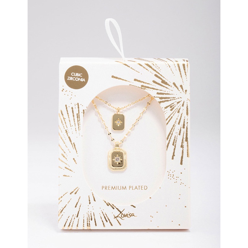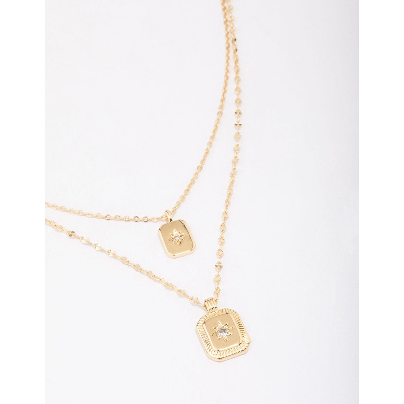 Gold Plated Celestial Cubic Zirconia Layered Necklace