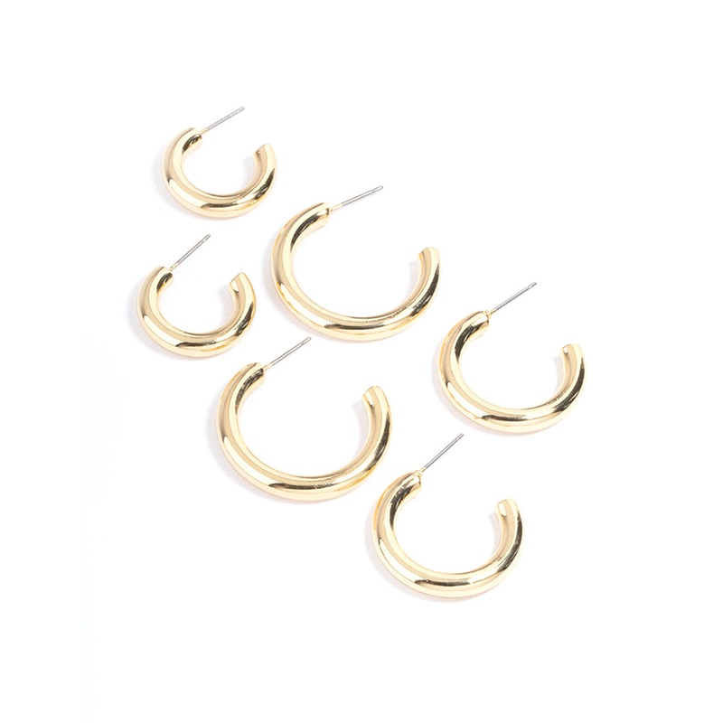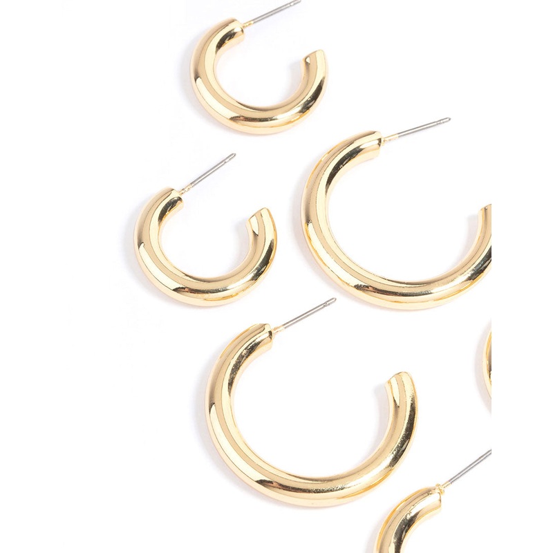 Gold Plated Chunky Hoop Earrings Pack