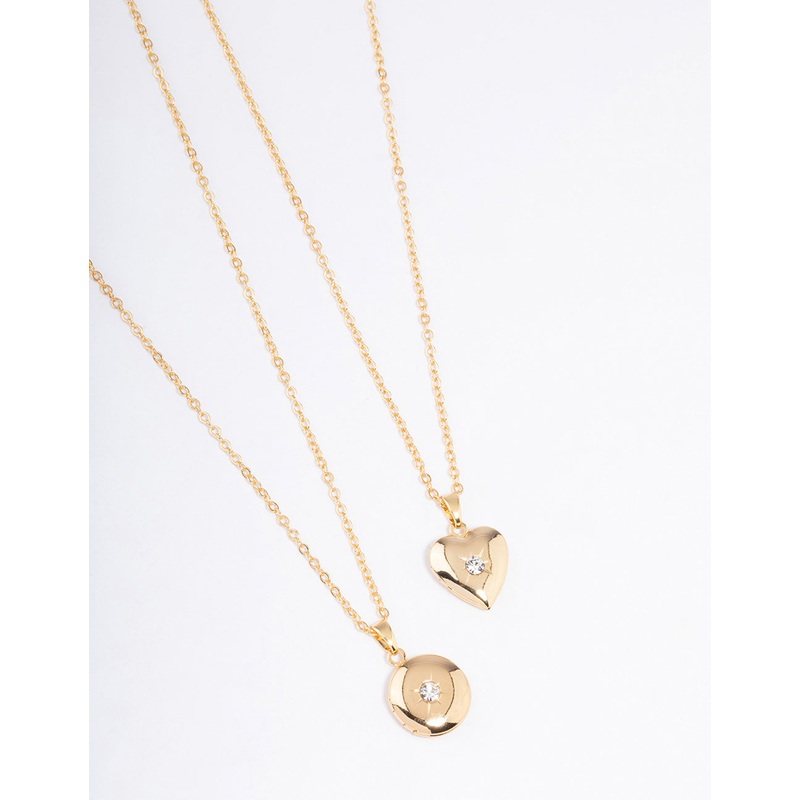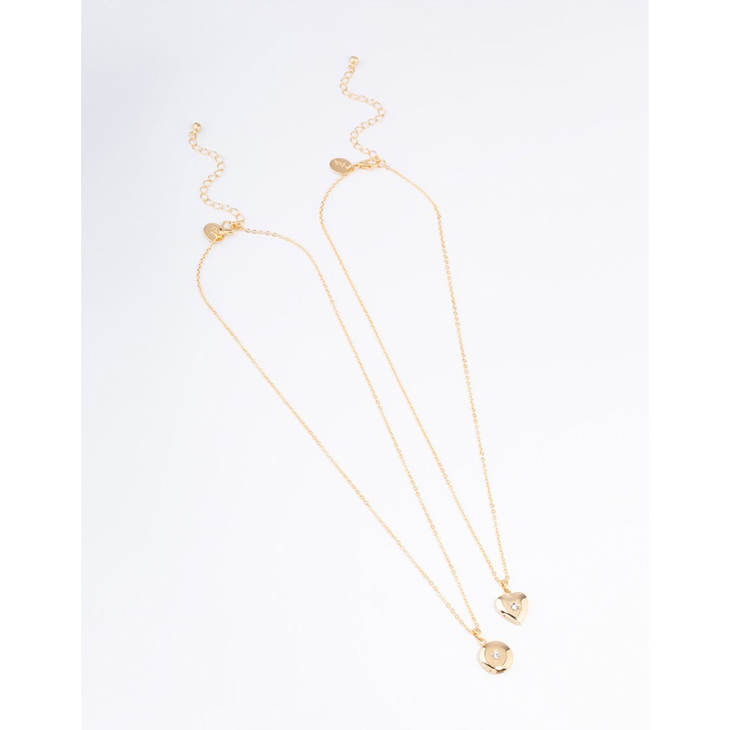 Style this Gold Plated Circle & Heart Locket Necklace 2-Pack with a set of simple studs for a timeless finish.
