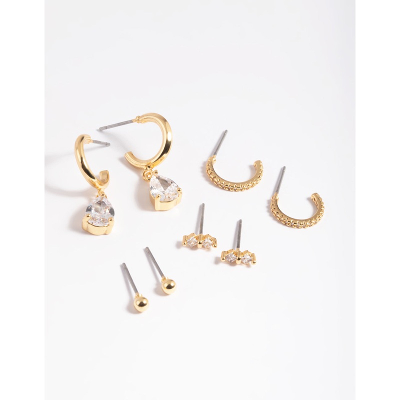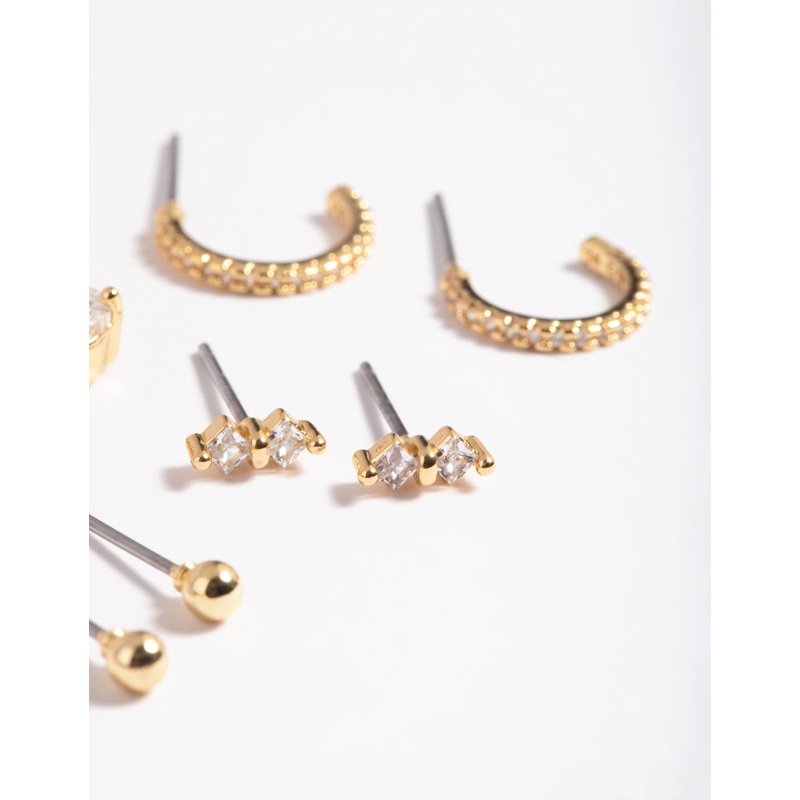 Gold Plated Cubic Zirconia Dainty Earring Pack