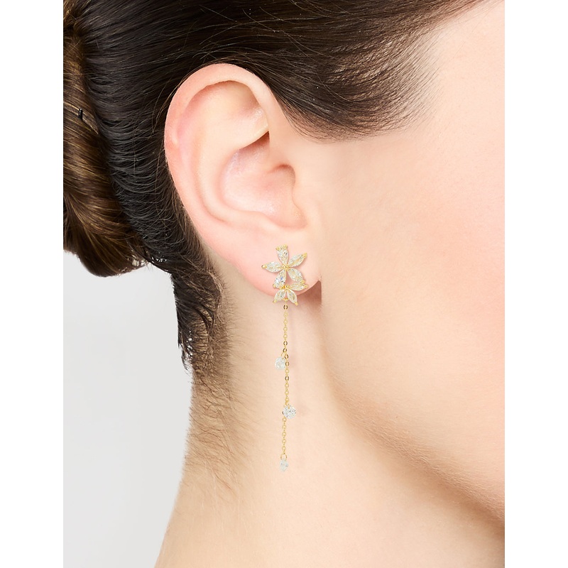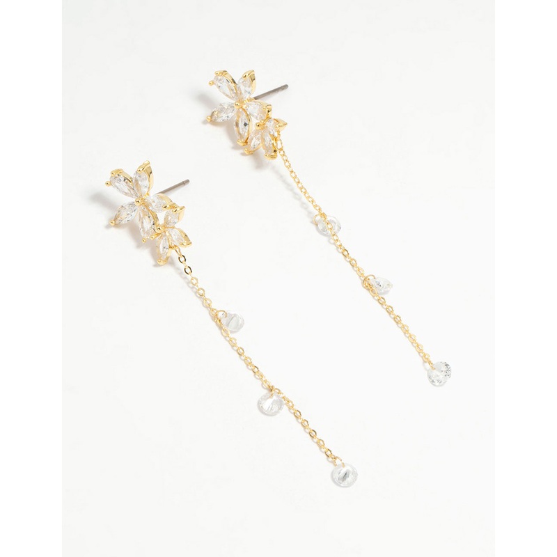 Gold Plated Cubic Zirconia Flower Chain Drop Earrings