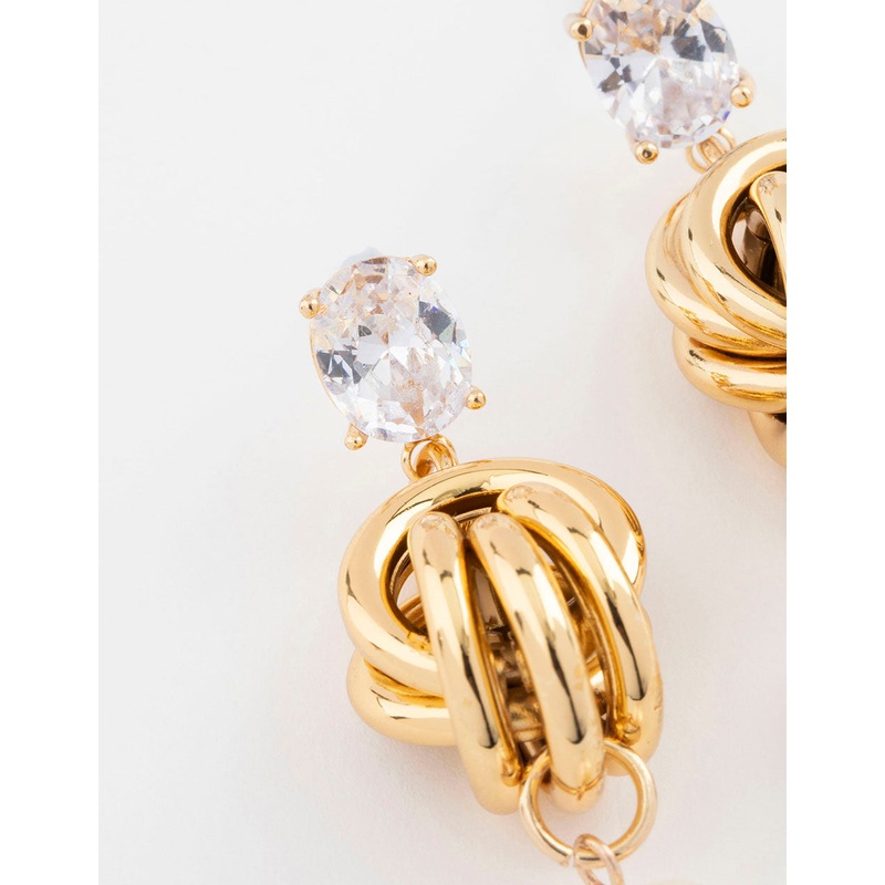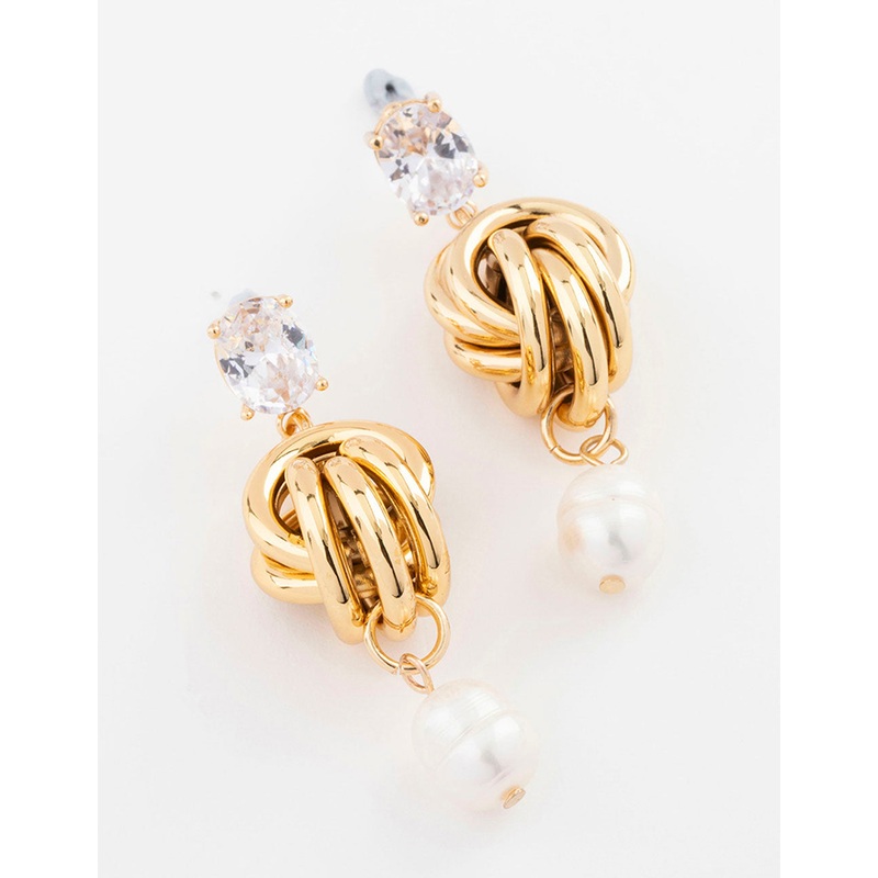 Gold Plated Cubic Zirconia & Freshwater Pearl Knotted Drop Earrings
