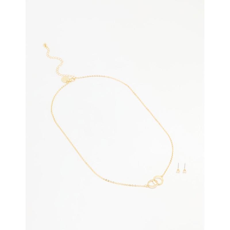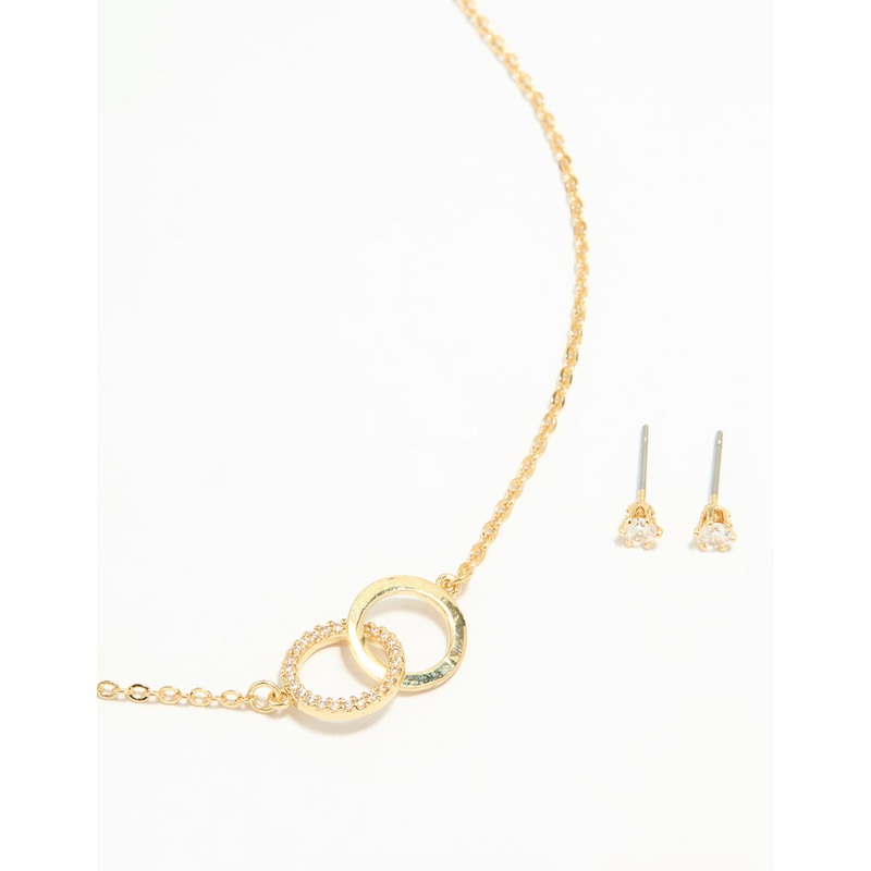 Gold Plated Cubic Zirconia Linked Necklace & Stud Earrings Set