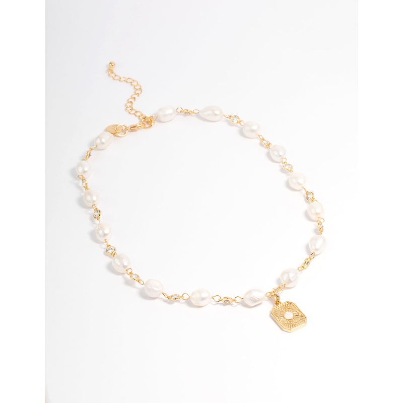 Gold Plated Freshwater Pearl Diamante Chain Pendant Necklace