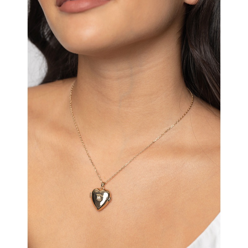 Gold Plated Heart Locket Necklace with Cubic Zirconia