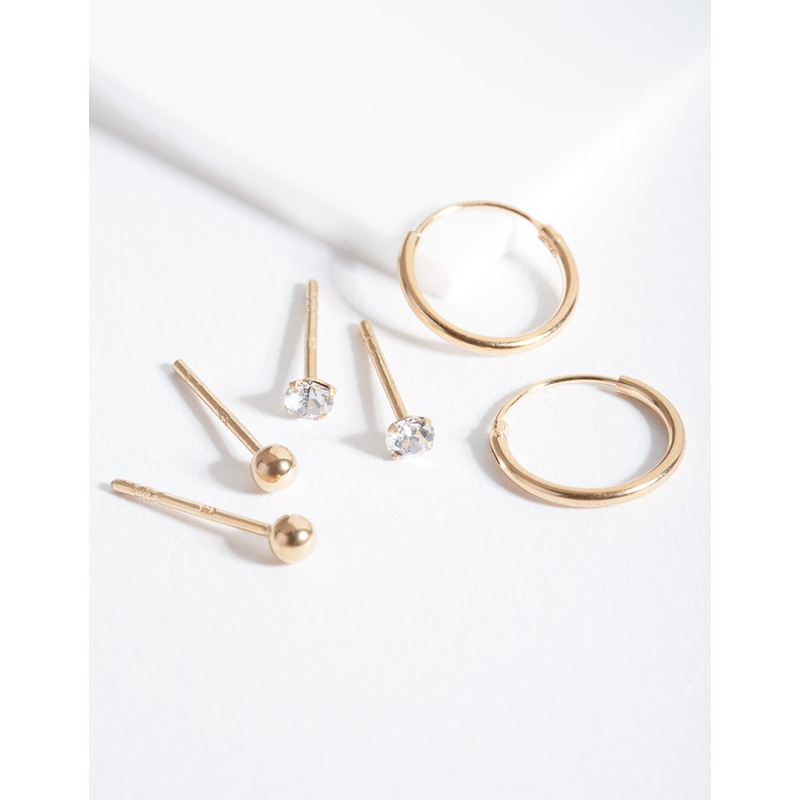 Gold plated sterling silver jewellery is the perfect way to add some everyday style to your collection. This pack boasts a trio of classic styles in stud and hoop shapes.