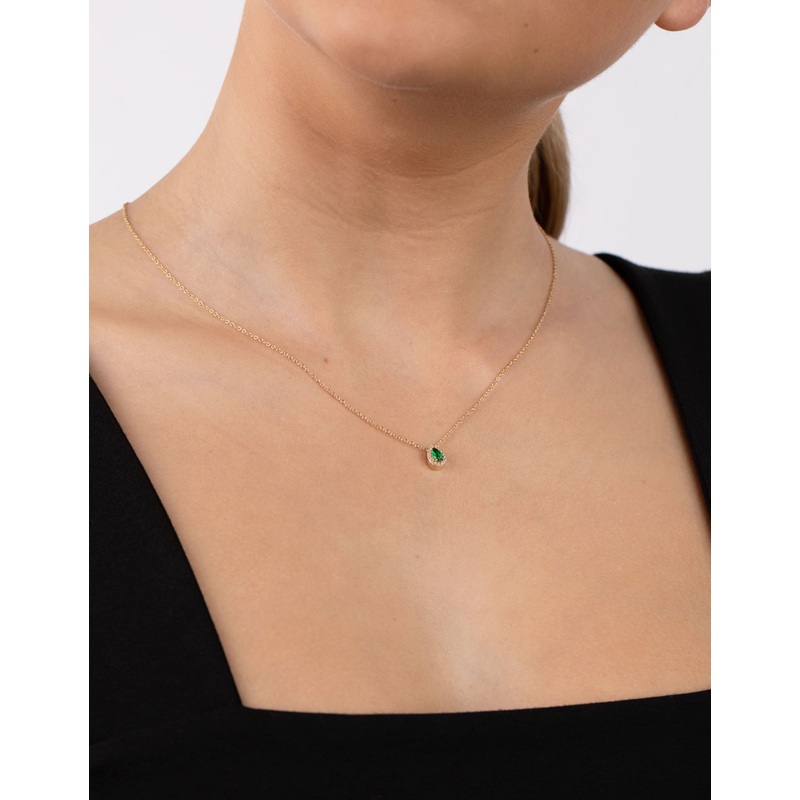 Gold plated sterling silver styles are the ultimate jewellery-box essential. Dress up your look with this stunning green pear halo necklace.