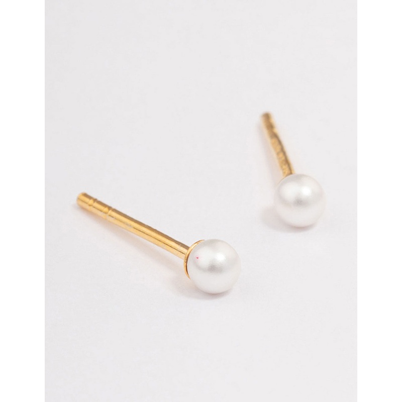 Gold Plated Sterling Silver Pearl Stud Earrings 3mm