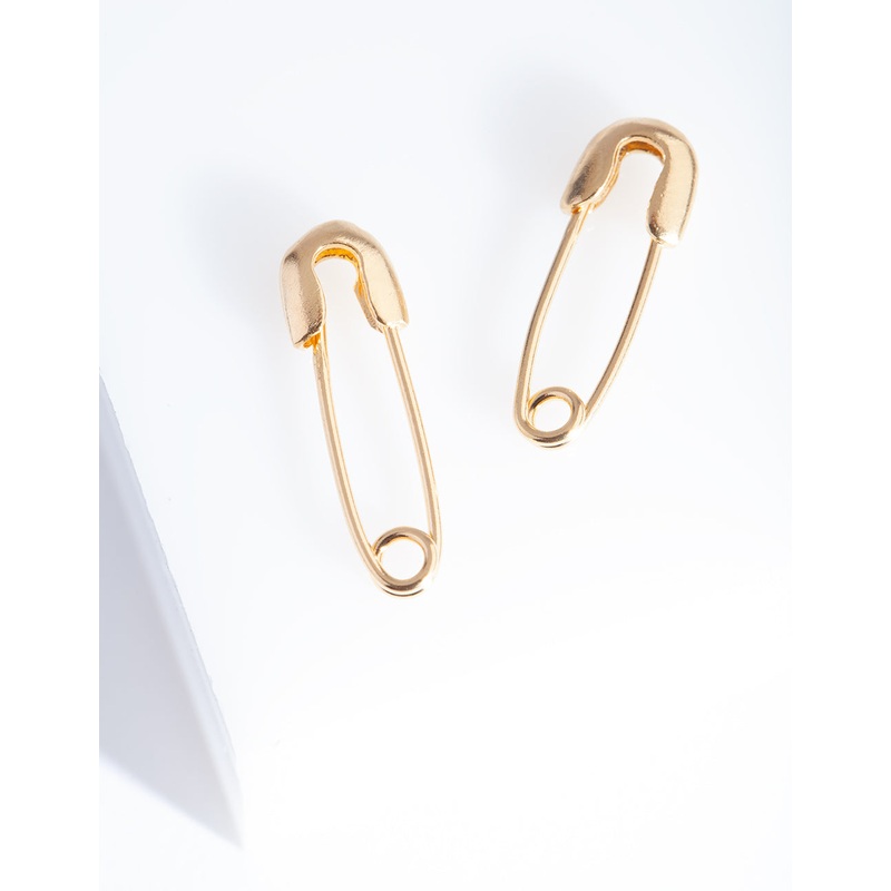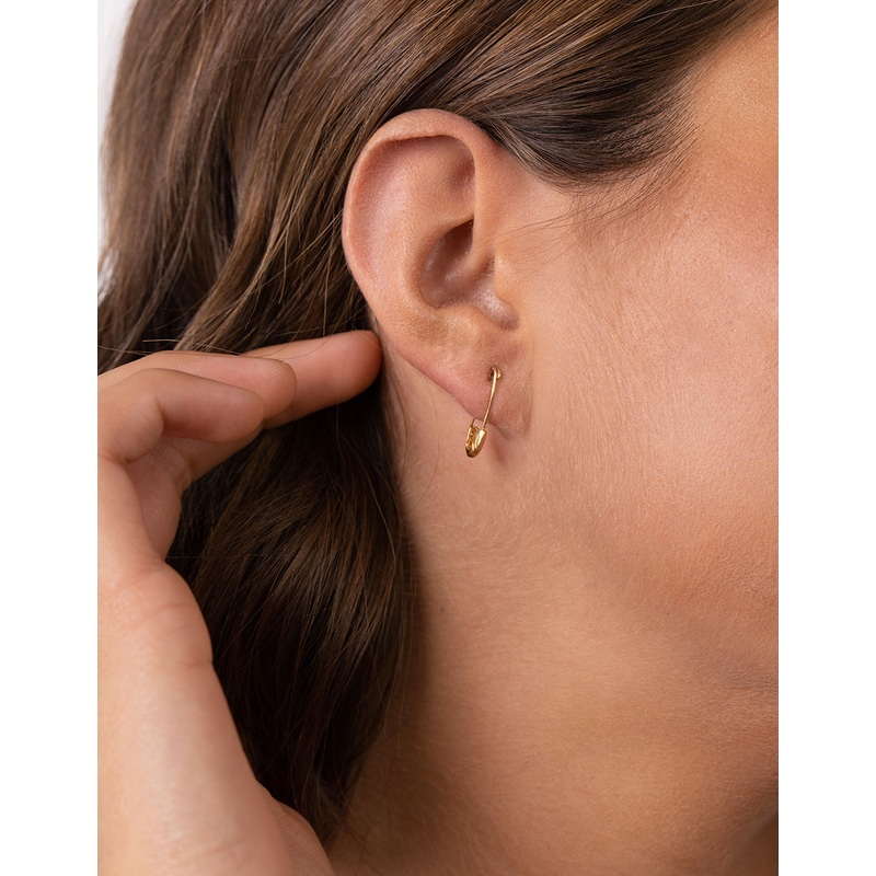Gold plated sterling silver styles are a great way to round out your collection. These earrings feature a safety pin design.