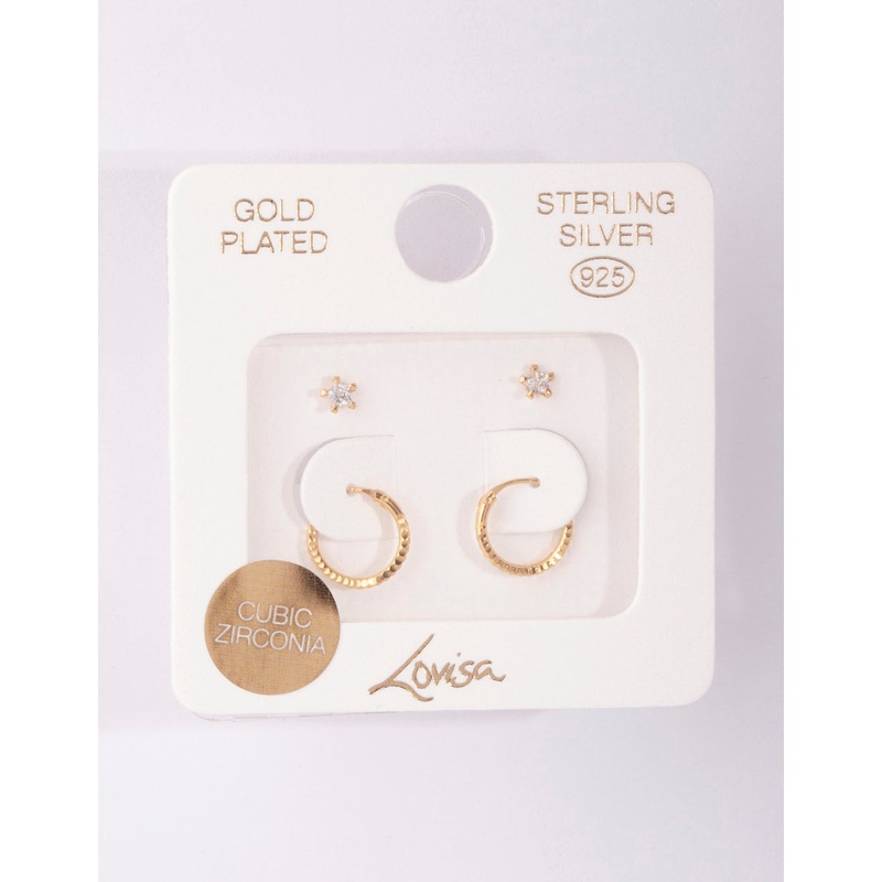 Gold Plated Sterling Silver Star Stud Hoop Earring Pack