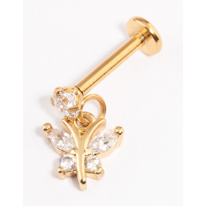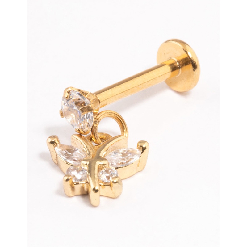 Gold Plated Surgical Steel Cubic Zirconia Butterfly Single Flat Back