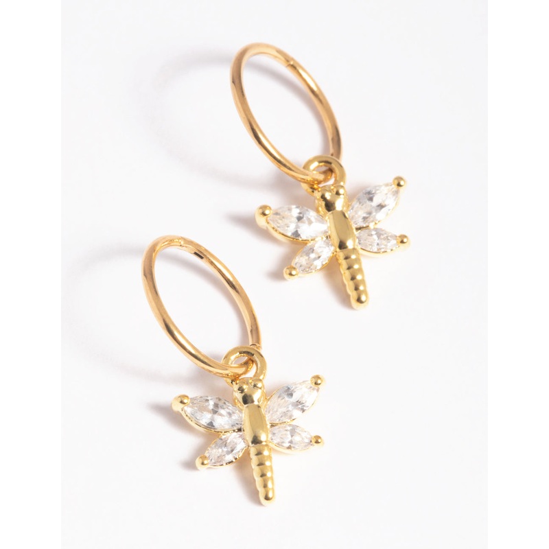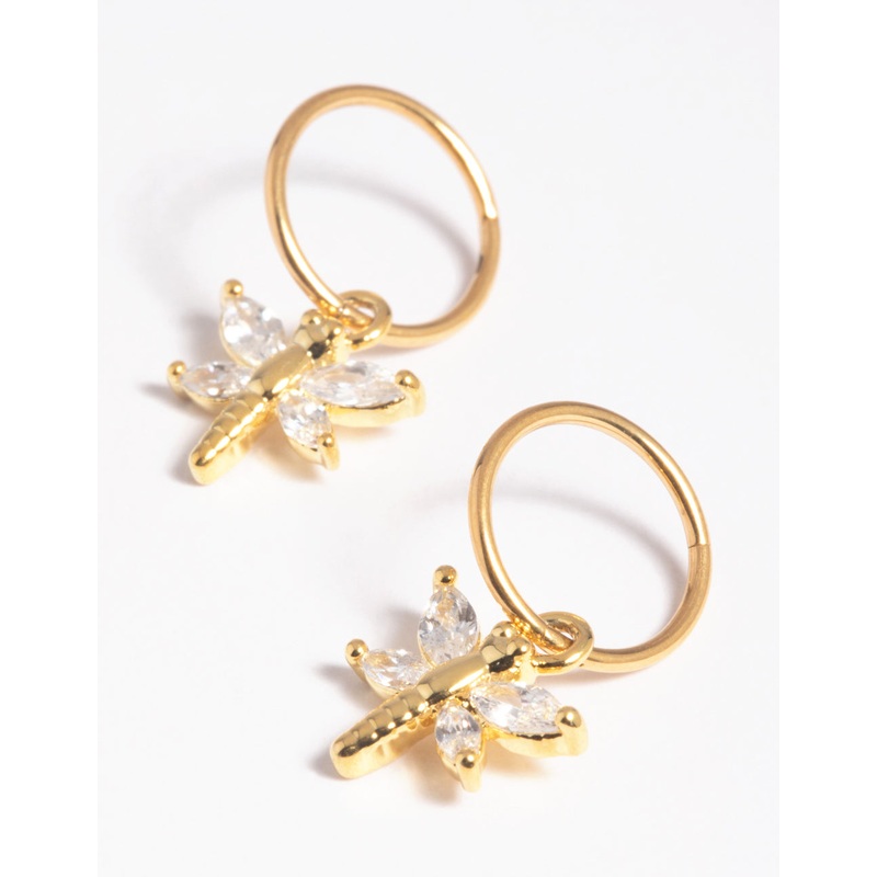Gold Plated Surgical Steel Cubic Zirconia Dragonfly Hoop Earrings