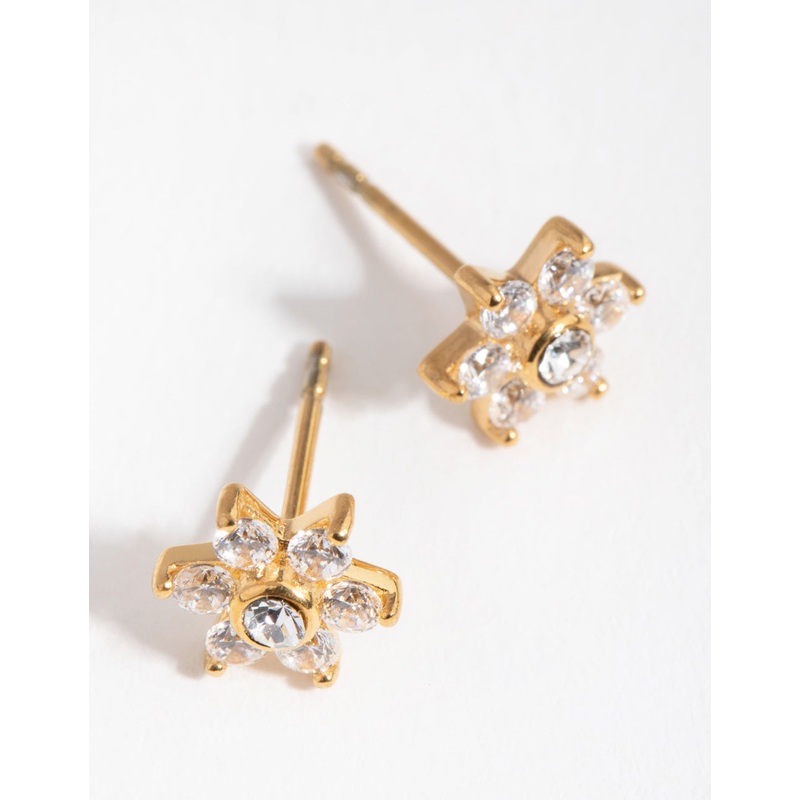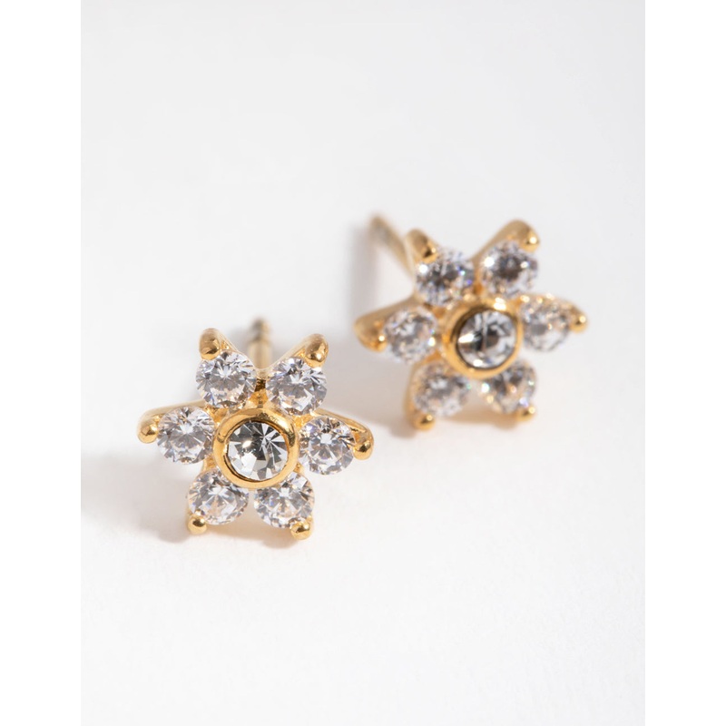 Gold Plated Surgical Steel Cubic Zirconia Flower Stud Earrings