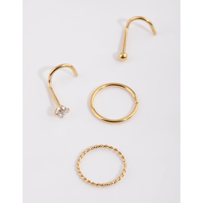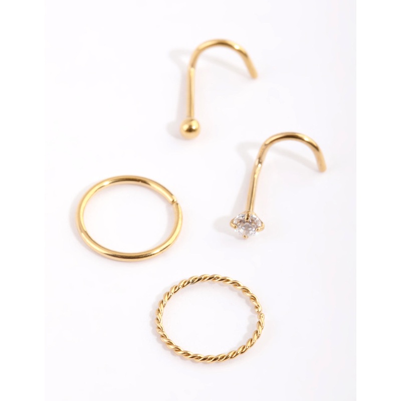 Gold Plated Surgical Steel Diamante Twisted Nose Ring 4-Pack