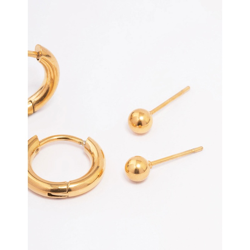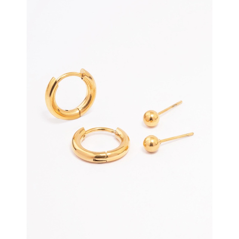 Gold Plated Surgical Steel Plain Stud & Huggie Earring Pack