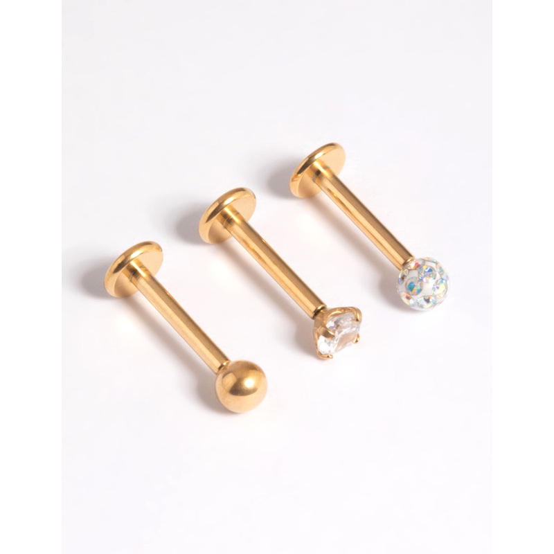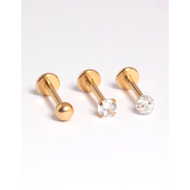 Invest in quality with premium piercing pieces made with titanium. Ttianium is a quality material that reduces the risk of irritation and is suitable for senstive skin. These premium flat back earrings are plated with genuine gold for authentic lustre and shine. They feature a threadless structure, which means the piercing can be inserted and removed using a simple pull action – eliminating the need for fiddly screws. The gauge measures 16G/1.2mm. Wear this premium flat back pack in a curated ear stack for a custom look!