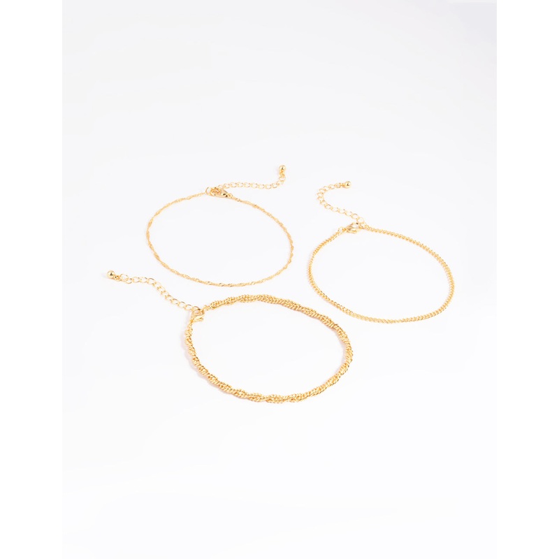 Gold Plated Twisted Chain Anklet Pack