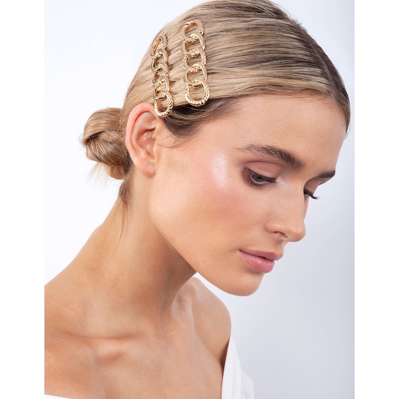 Gold hair accessories are perfect for those wanting to create a glamorous and warm occasion look. These lovely linked rope hair slides have a shiny gold-toned finish. Draw attention to your luscious locks with this hair clip pack.