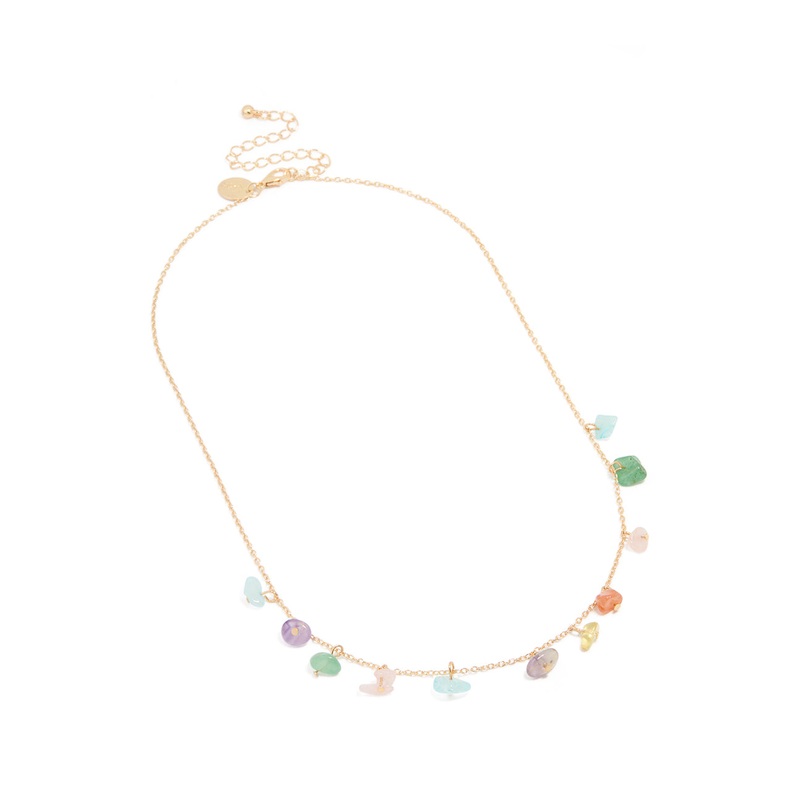 Gift gorgeous boho style with this gold-toned necklace featuring colourful semiprecious stones.
