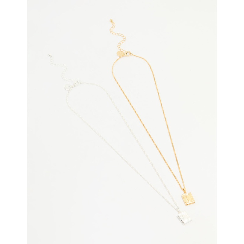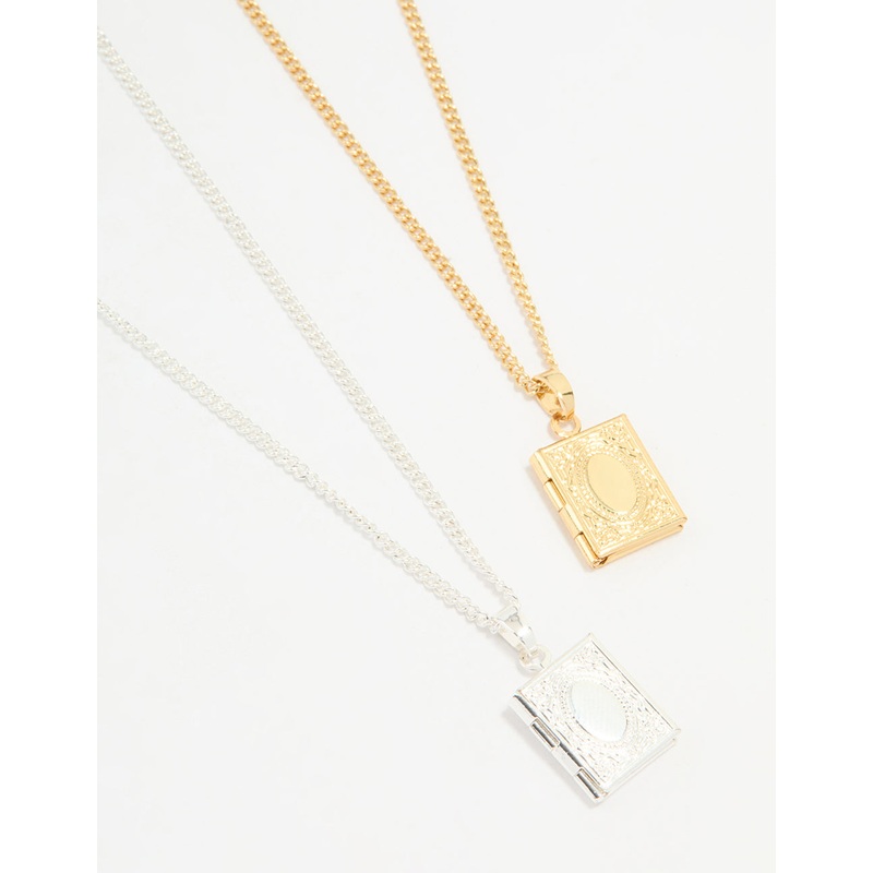 Gold & Silver Plated Locket Pendant Necklaces 2-Pack