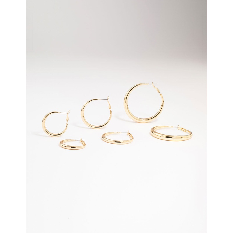 Spoil yourself with this gold-toned earring trio! Featuring three different sized hoops with a smooth, flattering finish, this set is perfect for a clean and sophisticated vibe.