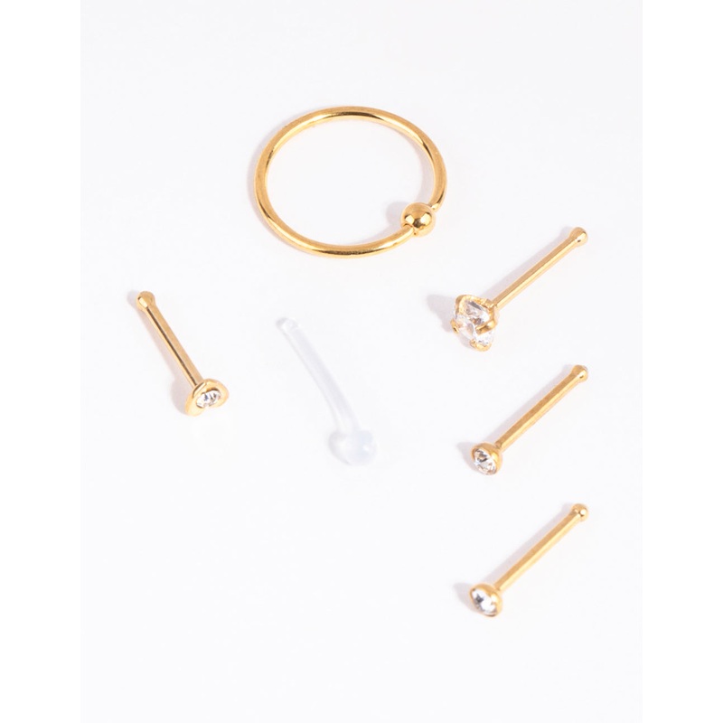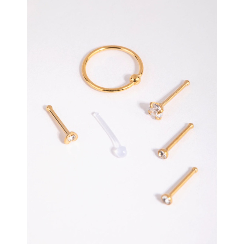 Gold Surgical Steel Mix Stud Ring Nose 6-Pack