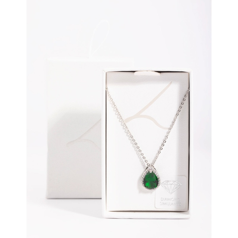 Be the first to review “Green Cubic Zirconia Pear Halo Necklace”