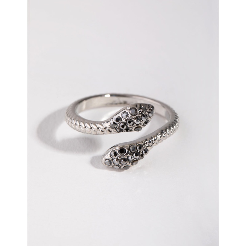 Raise your ring game with this stunning fashion ring. This ring features an open snake motif design, embellished with black diamantes and in a gorgeous gunmetal-tone. Layer with finer accessories for maximum impact!