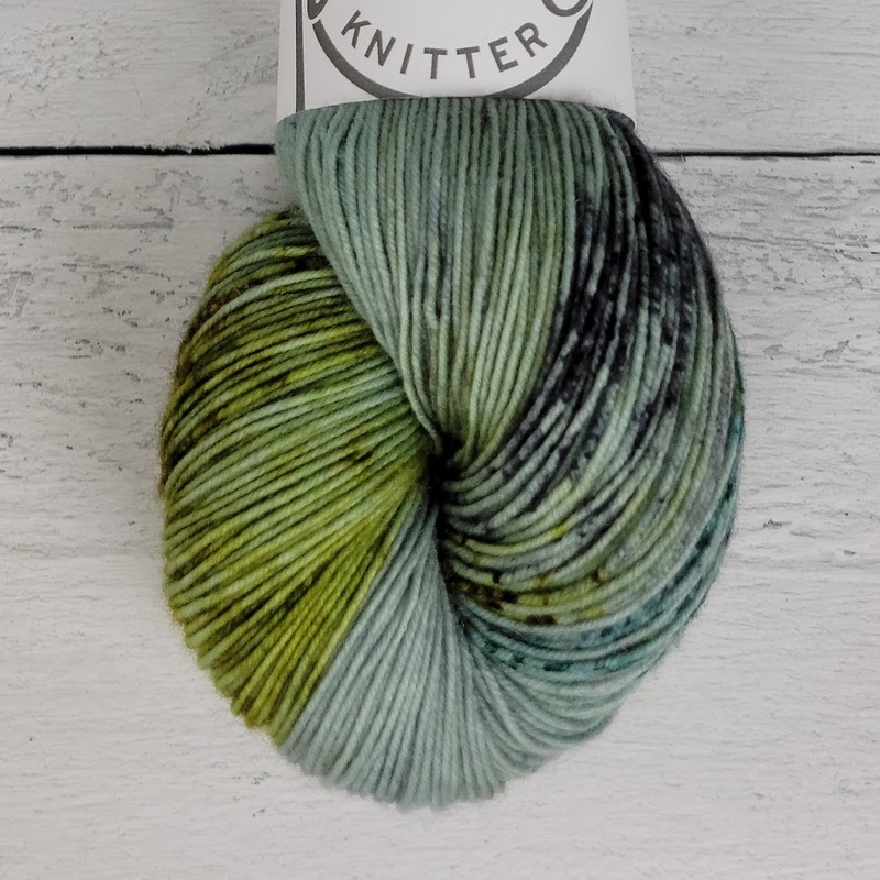 Cool, light green/blue base with speckles of scummy greens, charcoals, teals and a few spots of pink throughout.