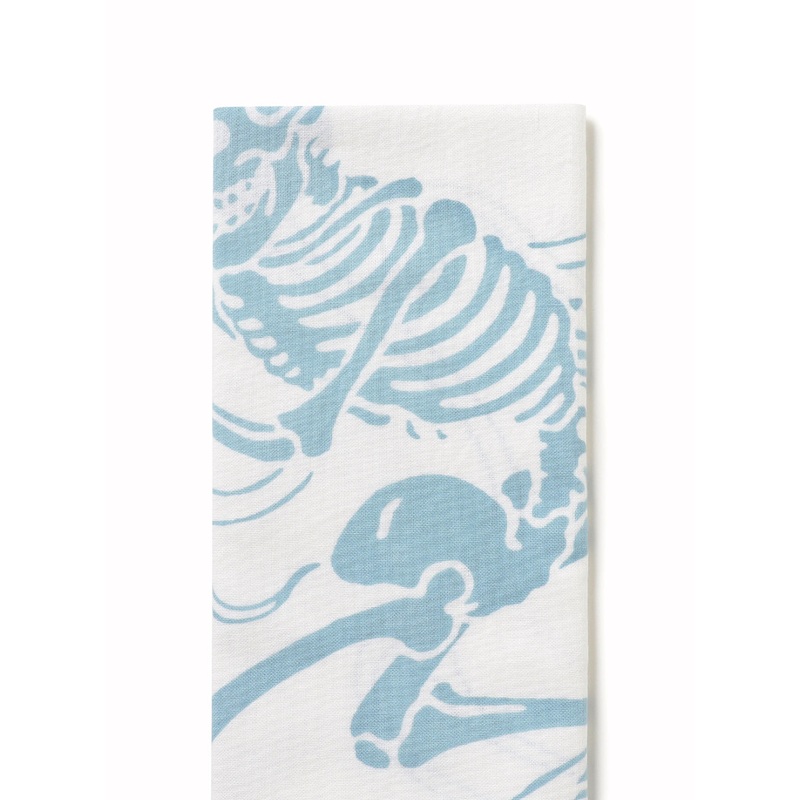 A playful twist on traditional Japanese iconography, this hand towel features a skeleton mid-trick on a skateboard, printed in soft blue ink on crisp white cotton. Swirling lines add a sense of motion, while scattered dots evoke the ambiance of a starry night or drifting smoke, giving the graphic a dynamic and whimsical edge.