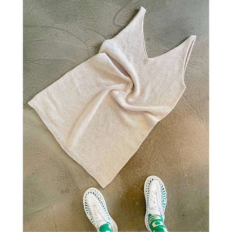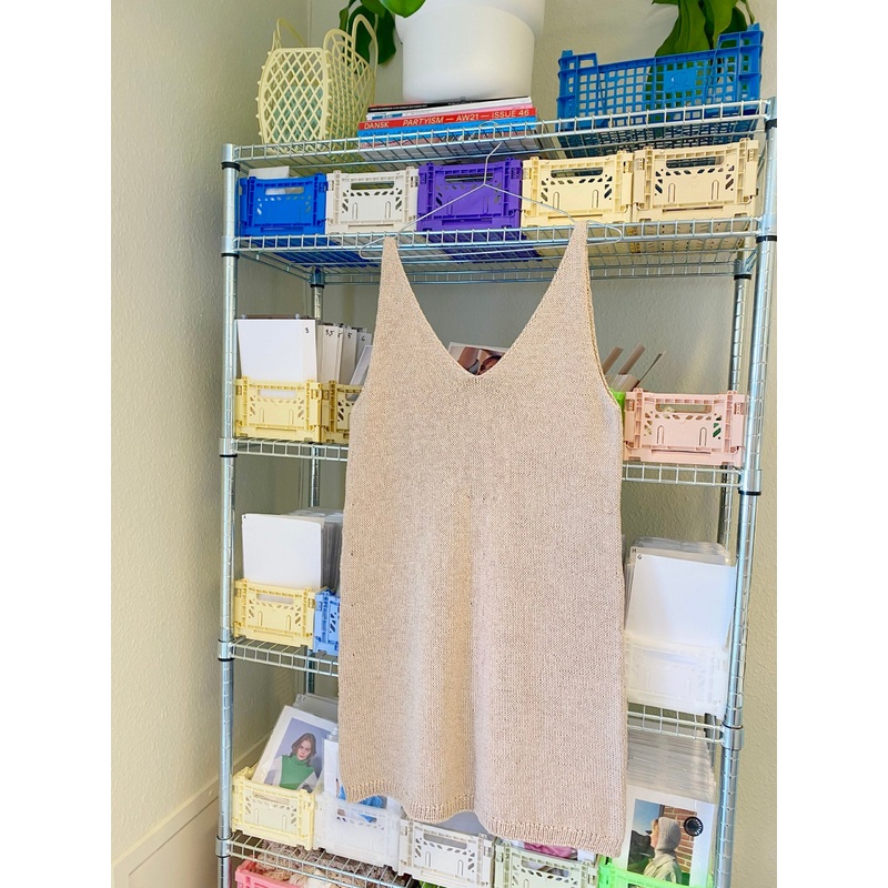Inge Dress strikkes oppefra og ned. Kjolen har dyb v-udskring foran og p ryg, og er lettere A-formet. Begynderstrik.