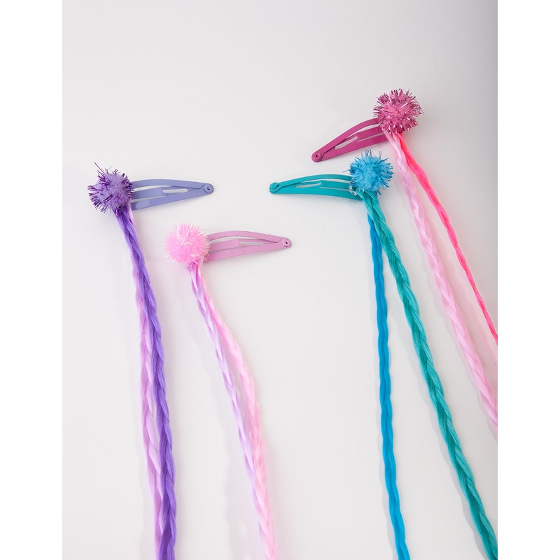 Add colour and fun to any outfit with this 4 pack of pom pom faux hair clips. Perfect for little fashionistas.