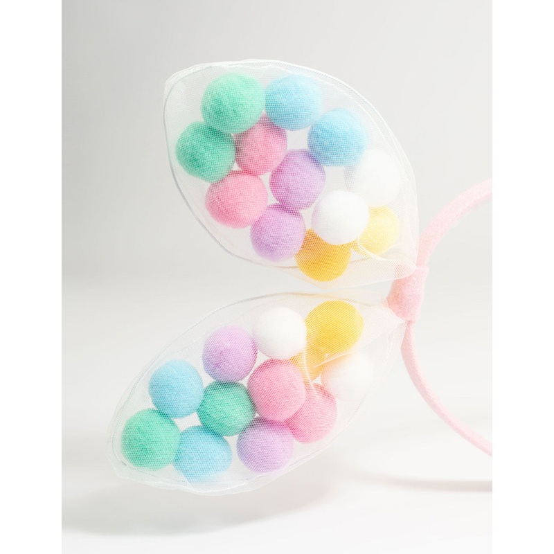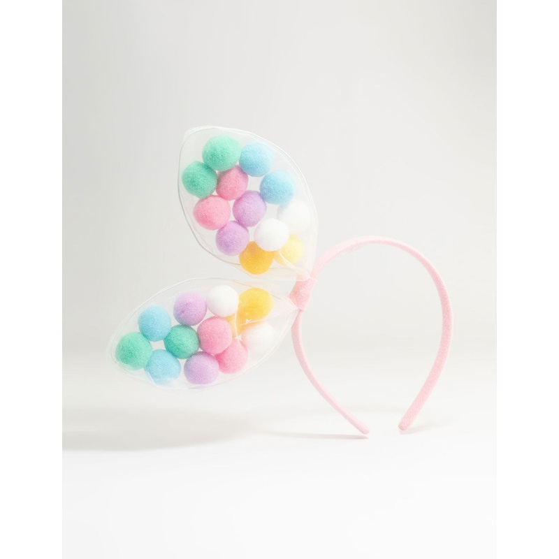 Kids Pastel Fabric Pompom Bunny Ears Headband