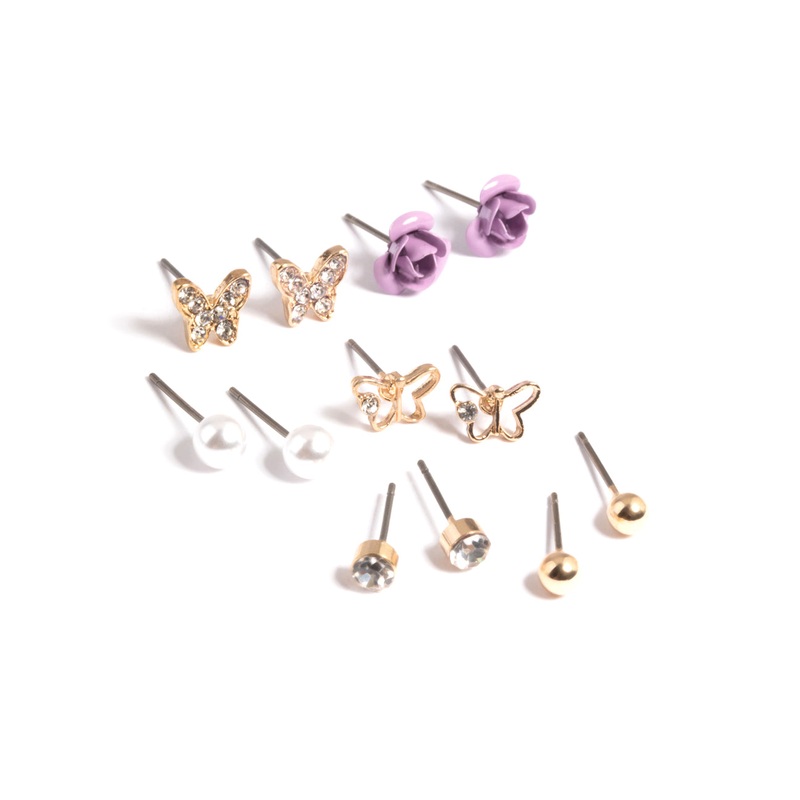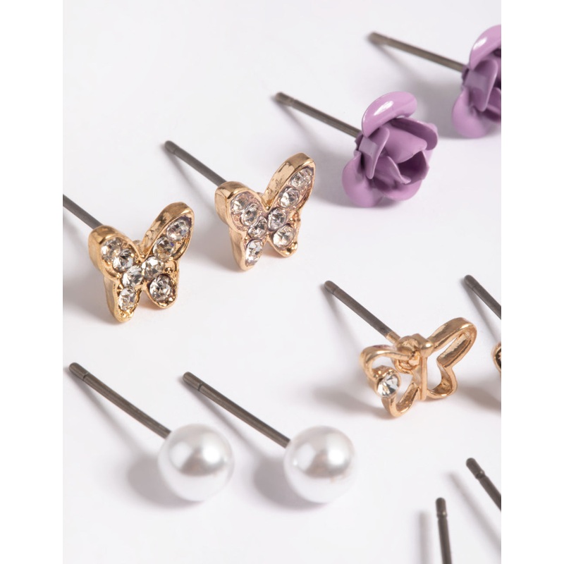 Kids Purple Pave Butterfly 6-Pack Stud Earrings