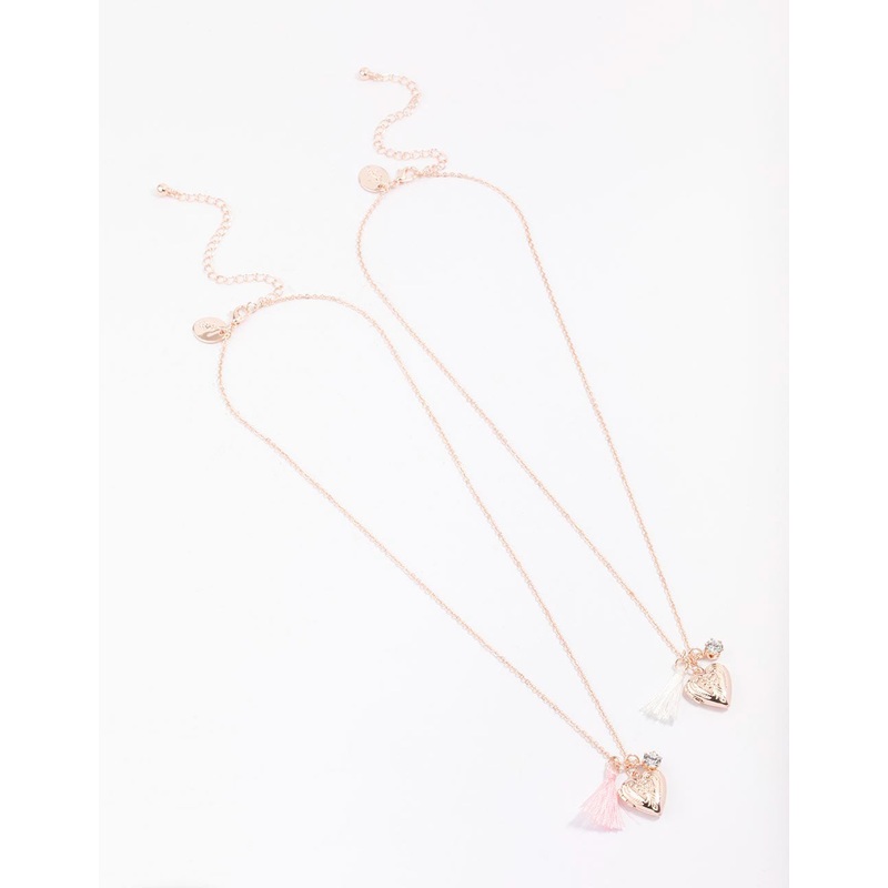 Kids Rose Gold Tassel Heart Locket Pendant Necklace Pack