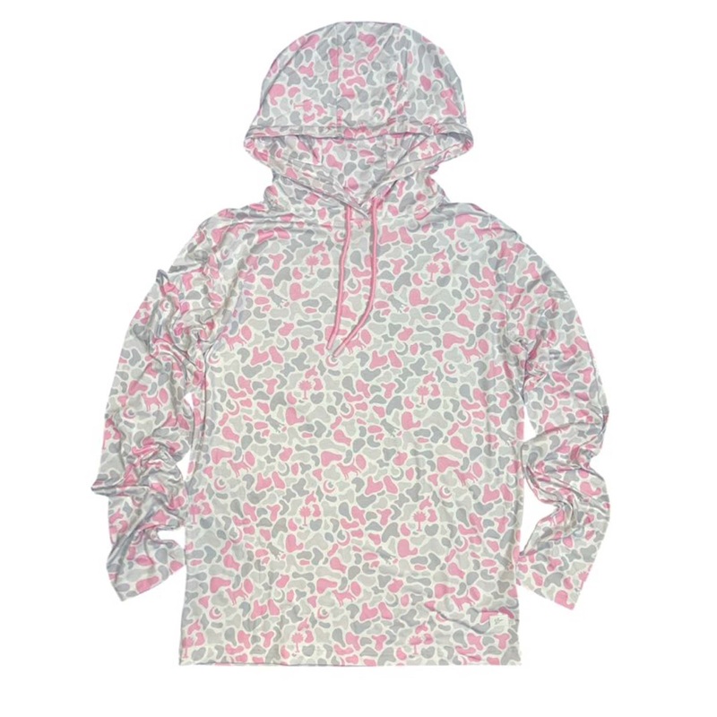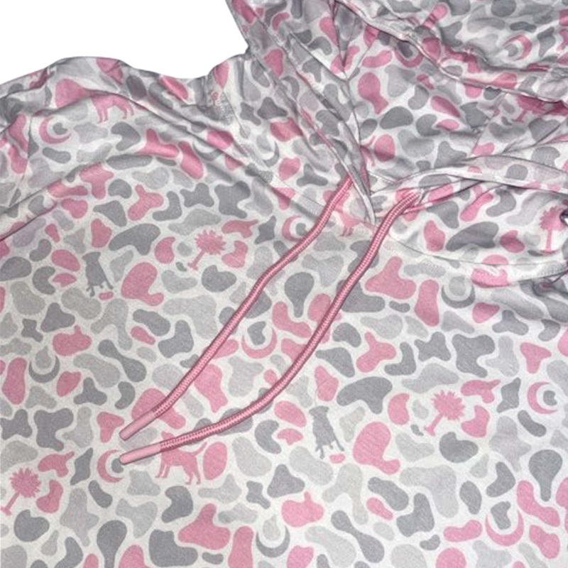 Blend comfort and Southern pride with this long sleeve hoodie t-shirt by Combat Waterfowl. Featuring a custom light pink and gray camo print, its perfect for casual wear or layering on cooler days.