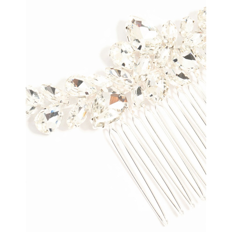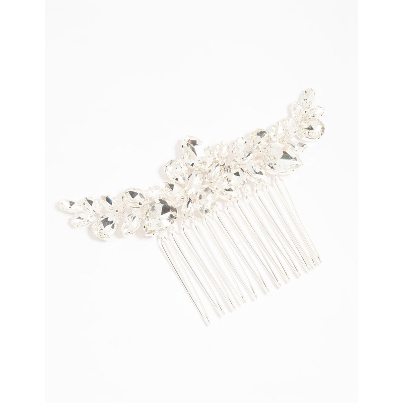 Upgrade your bridal look with the Marquise Crystal W-Shape Hair Comb. This elegant accessory features a silver finish and a W-shaped design decorated with sparkling marquise-set crystals.