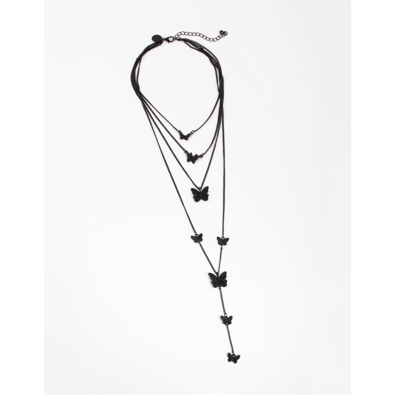 Matte Black Butterfly Layered Necklace